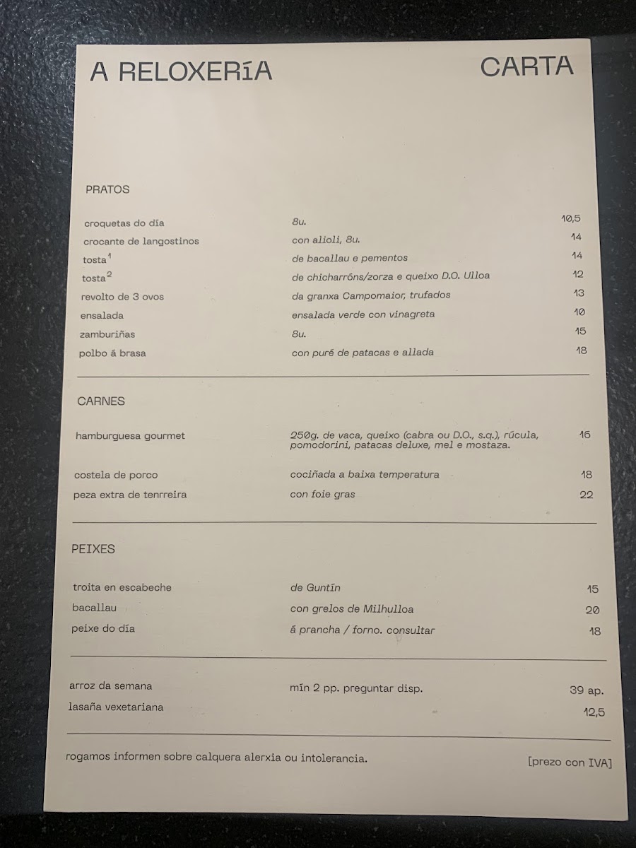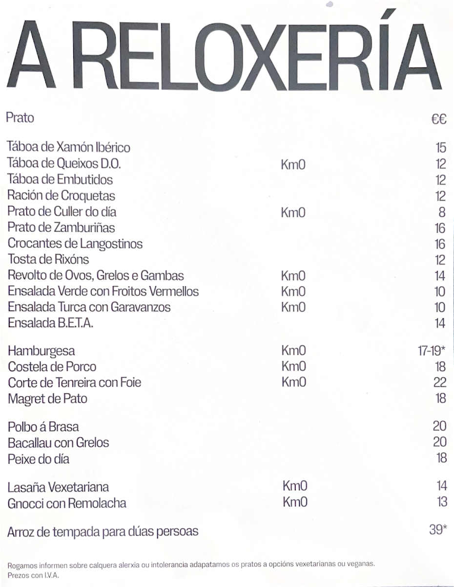 A Reloxería offers a thoughtfully curated menu that balances traditional Galician dishes with familiar comfort foods, creating an approachable dining experience in a relaxed setting. The menu features a variety of options ranging from simple café-style bites to heartier, comforting plates, inviting you to enjoy a leisurely meal whether stopping by for lunch, dinner, or a casual gathering.
